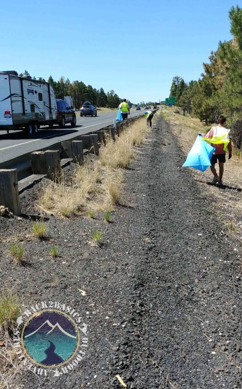 On July 3rd as most folks were off already starting their Independence Day celebrations, the crew at Back2Basics hit the Arizona highways to clean up trash and of course have some fun B2B style.Projects like this “Adopt a Highway’ project are part of our Community Service activities that we incorporate into our program as a way to give back to the community and learn to be of service to others.