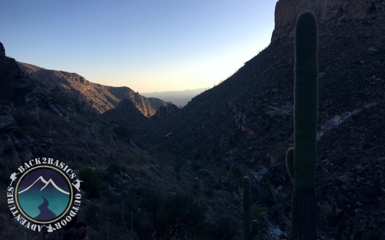 Monday was a fairly slow moving day for us, as we were only traveling 5ish miles on easier terrain as opposed to our rougher hike the day prior. We slept in until around 8, made our usual mandatory oats, and held an AA meeting. We left the campsite around noon, and reached our next campsite by about 2. It was a fairly uneventful hike, but our day was not yet over. After dropping off our backpacks, we did a short 20 minute jaunt over to Hutch’s Pools (I have no idea who Hutch is, why those pools are important, or why he claimed them, for the record), where several clients and the guides decided to do a nice little polar dip. The water was definitely chilly, but they’ve been in colder, so after some quick pushups and re layering, they were once again nice and toasty. We returned from Hutch’s Pools to the campground around 5 and ate some dinner before retiring early. Our plans had changed due to weather, so we were pushing down and out of Sabino Canyon the next day, and trying to summit Picacho Peak, which some of you may remember we climbed over Christmas.