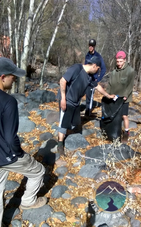 By now all of y’all probably know the basic early morning Sunday routine and have it memorized, but since we have so many new folks hopefully reading this, I’ll go ahead and make sure its known (say it along in your head if you already know what I’m gonna say!). We awoke Sunday morning happy and content, knowing West Clear Creek was our destination for the weekend. Per the usual, we climbed aboard the vans burritos and coffee in hand, and made our was to the 9:00 Men’s Stag AA meeting. There was a great discussion, and many of our clients shared in it. After the meeting, we hit up the gym. Some rousing games of basketball were played, as well as walleyball, racquetball, and lifting heavy objects and setting them back down again for fun. Afterwards around 12:30 we got back into the vans and headed out to West Clear Creek. I had control of the aux cord in our van, so we drove to the rousing tunes of Alan Jackson, Toby Keith and Taylor Swift among others. Once we got there, we strolled a leisurely 3 miles to camp, stopping along the way for a pretty sweet cliff jump which several clients took part in. Our campsite was a pretty heavily used and in an awesome location, so after setting up our bedrolls (or tents), we got a roaring fire going, settled in for some fun and games, ate dinner, and turned in for the night.