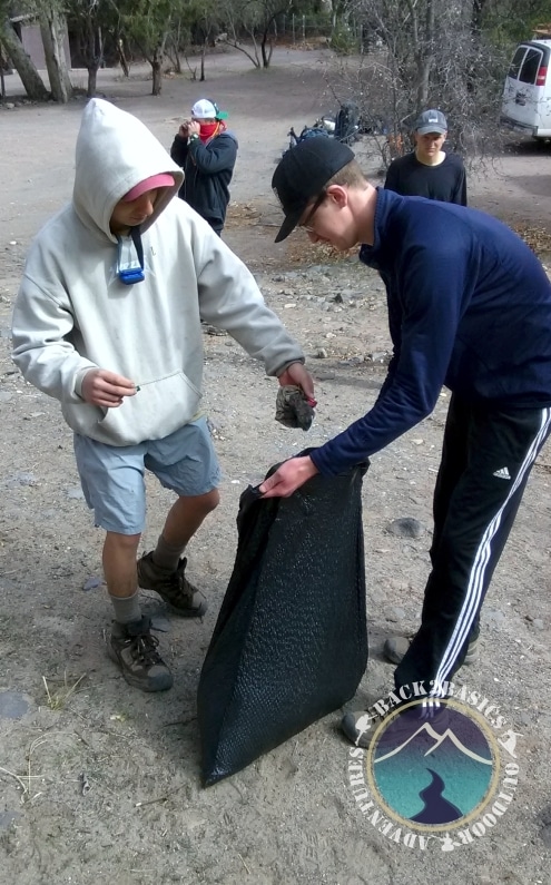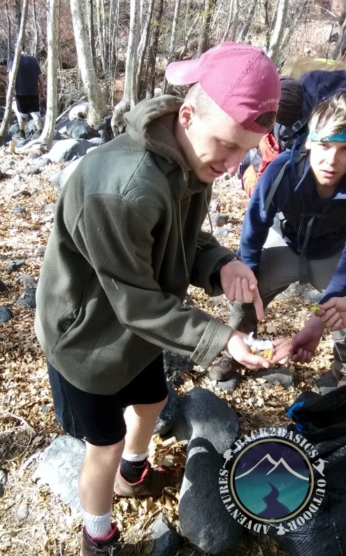 After a beautiful nights sleep, we got up around 8:00 to start our day hike. Until the halfway point, we stuck to trails that roughly followed the creek, and were treated to a rousing 10 minute explanation on how West Clear Creek got its name (hint; its fairly obvious from the name). We stopped midway through to journal for our later SIC discussion. However, to the chagrin of some clients, Guide Nick promised everyone that they were going to get their boots wet. At the halfway point that promise came to fruition as the trail ended into the creek, and we quickly jumped in and began the several mile wade back to camp. It was incredibly fun, trying not to fall into the cold water, jumping from rock to rock and generally enjoying the day. We took a couple of shirtless group pics (gotta show off the muscles!) and eventually made our way back to camp. After another roaring fire was built, we began drying our boots and socks and participated in Sharing Is Caring session. There were a few games of spades, and a game of follow the leader (a pretty physically demanding climbing game), and then once again, we fell asleep to a starry sky and the sound of the nearby creek.