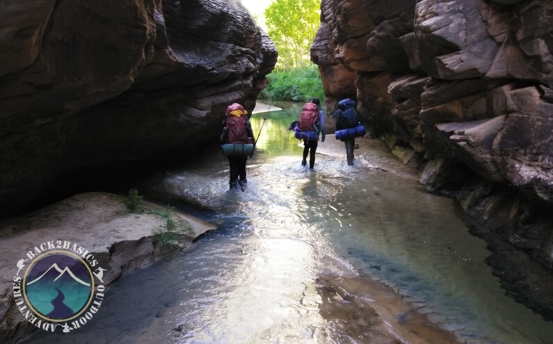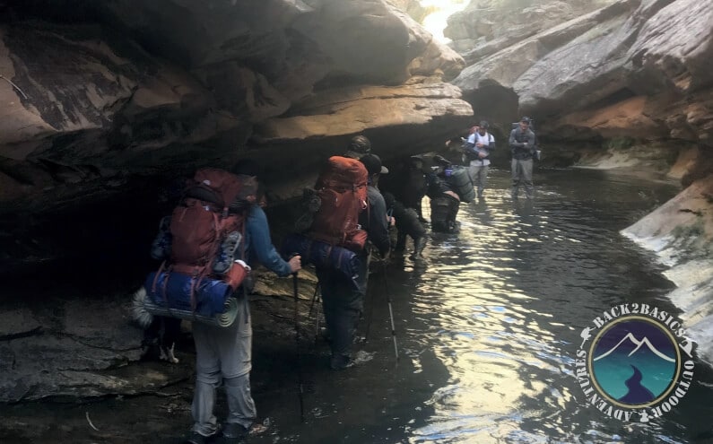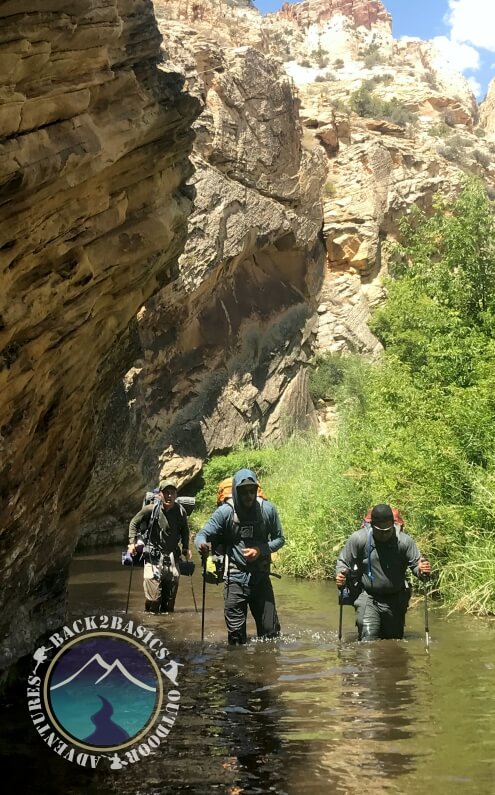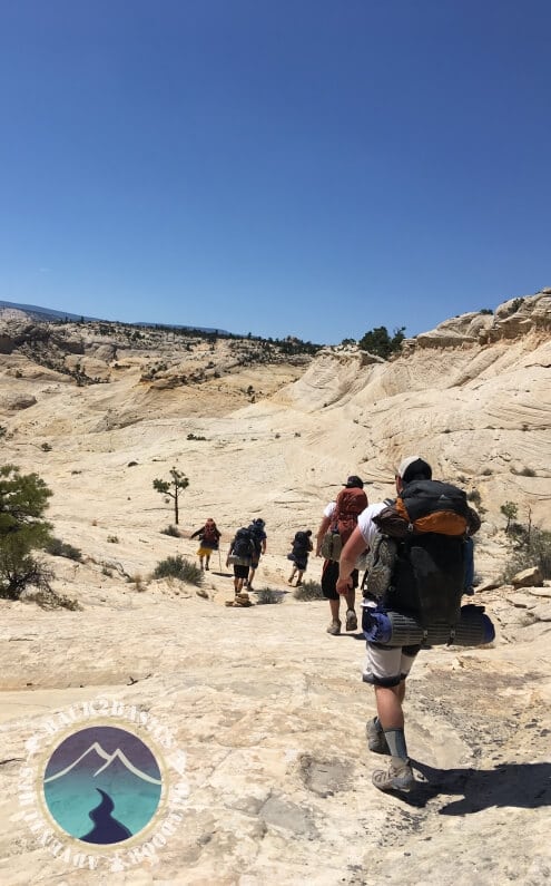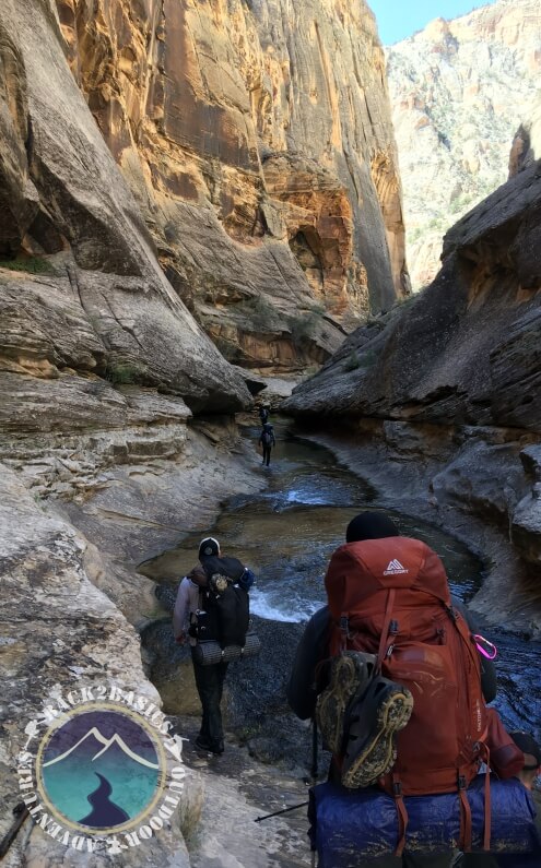 The next day we hiked in on the Boulder Mail Trail down into a canyon called Death Hollow. Shortly after crossing Maime Creek we arrived to our campsite at a bend in the canyon and within a small pine tree grove. We were surrounded by beautiful landscape, huge walls of white sandstone (apparently ancient sand dunes) and the pristine spring fed creek flowing through. The weather was super hot but we got to hike in the creek for most of the trip which turned out to be quite nice.