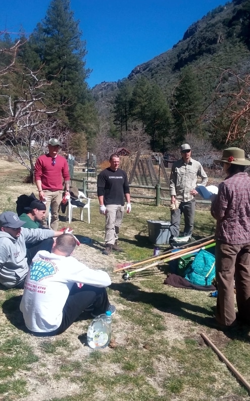 The clients now participate in a weekly service commitment at “Orchard Canyon on Oak Creek” in Sedona. Here the clients participate in therapeutic gardening. We begin by checking in with Kate, our volunteer coordinator. We talk about how we feel that day and what we are grateful for. Then Kate shares a poem with the group and we then participate in various forms of gardening. During the first week, we spent most of our time clearing the gardens from last years growth. We also enjoyed a picnic lunch in the orchard. The following week, we volunteered the day before they opened to the public for the season. Most of our time was spent raking the grounds around the main lodge. Enjoy some of the photos of our recent trip to Orchard Canyon on Oak Creek.